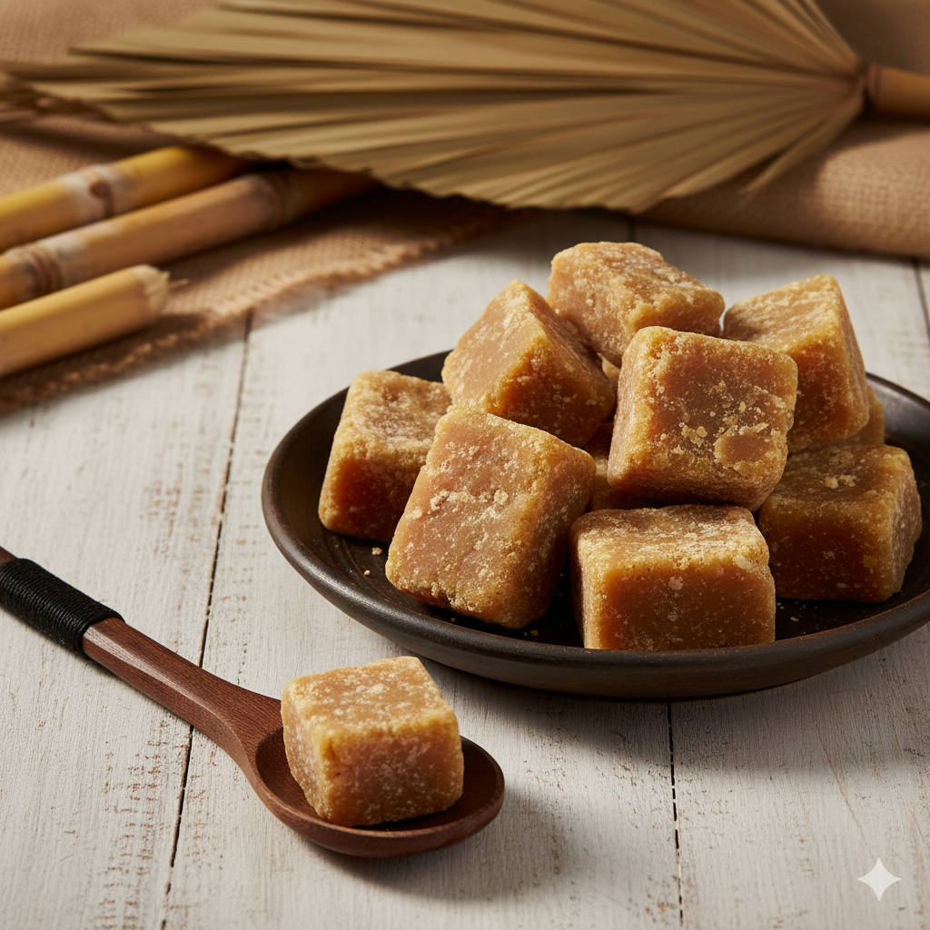 ✔️ Rich in Nutrients: Being unrefined, our jaggery blocks retain vital micronutrients like Iron, Magnesium, Potassium, and essential antioxidants, which are stripped away in white sugar.